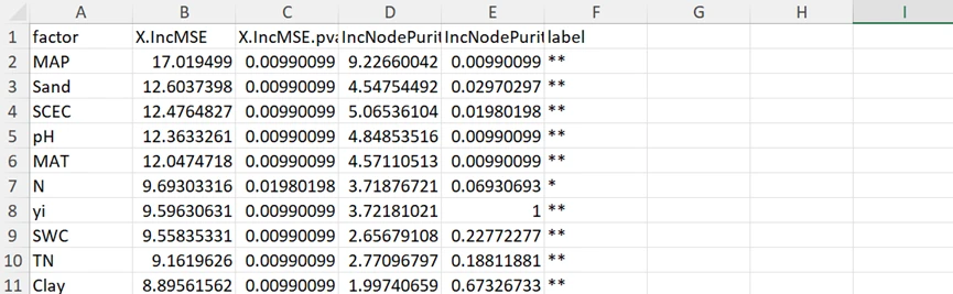 在随机森林结果生成的 01_random_forest_result.xlsx 文件中包含了后续绘图需要的数据