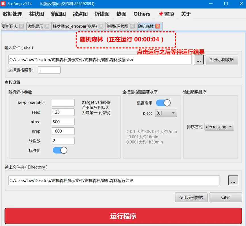 使用EcoAmp运行随机森林: