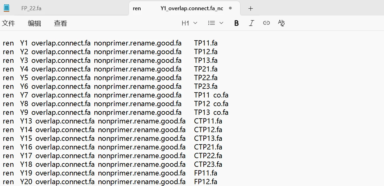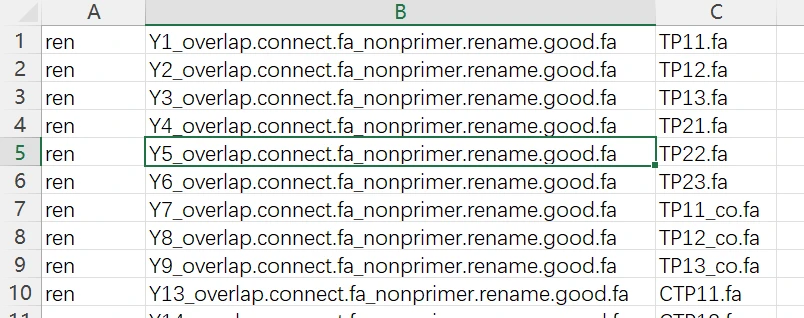 现在是需要将我下面的文件夹中的样品编号进行对应的重命名